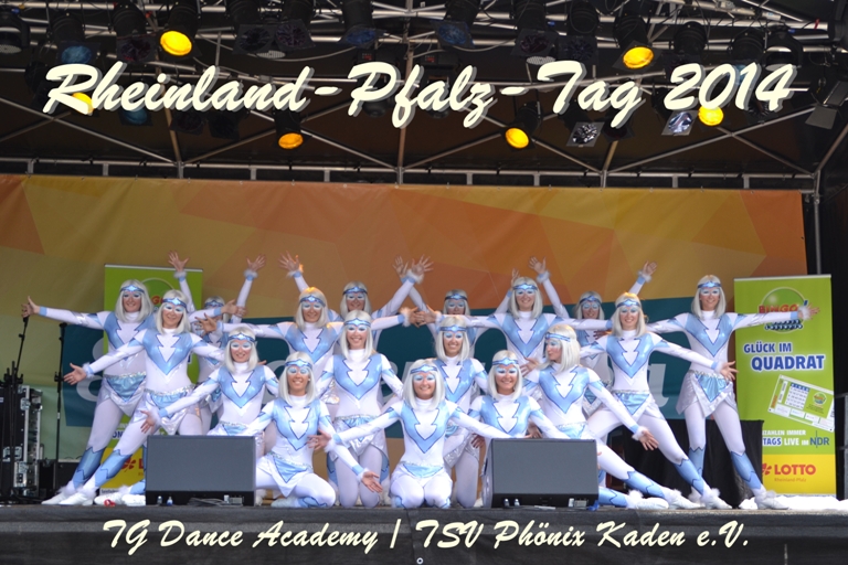 Am Samstag, dem 19. Juli 2014, war unsere Tanzgruppe „Dance Academy“ (Trainerin: Theresa Fein) als Showact auf der Schlagarena-Bühne des Turnverbandes Mittelrhein anlässlich des Rheinland-Pfalz-Tages 2014 in Neuwied vertreten. Bei mehr als 30°C im Schatten schlüpften unsere Tänzerinnen in ihre hautengen Kostüme und wussten trotz Ausfall zweier Positionen und einer sehr kleiner Bühne das Publikum zu begeistern. Professionell wie immer zeigten sie ihren Showtanz „Antarctica – Im ewigen Eis“ und verdienten sich somit eine kleine Sommer-Auftrittspause. Das nächste Turnier unserer Mädels findet am 27. September 2014 in Wöllstein statt.
